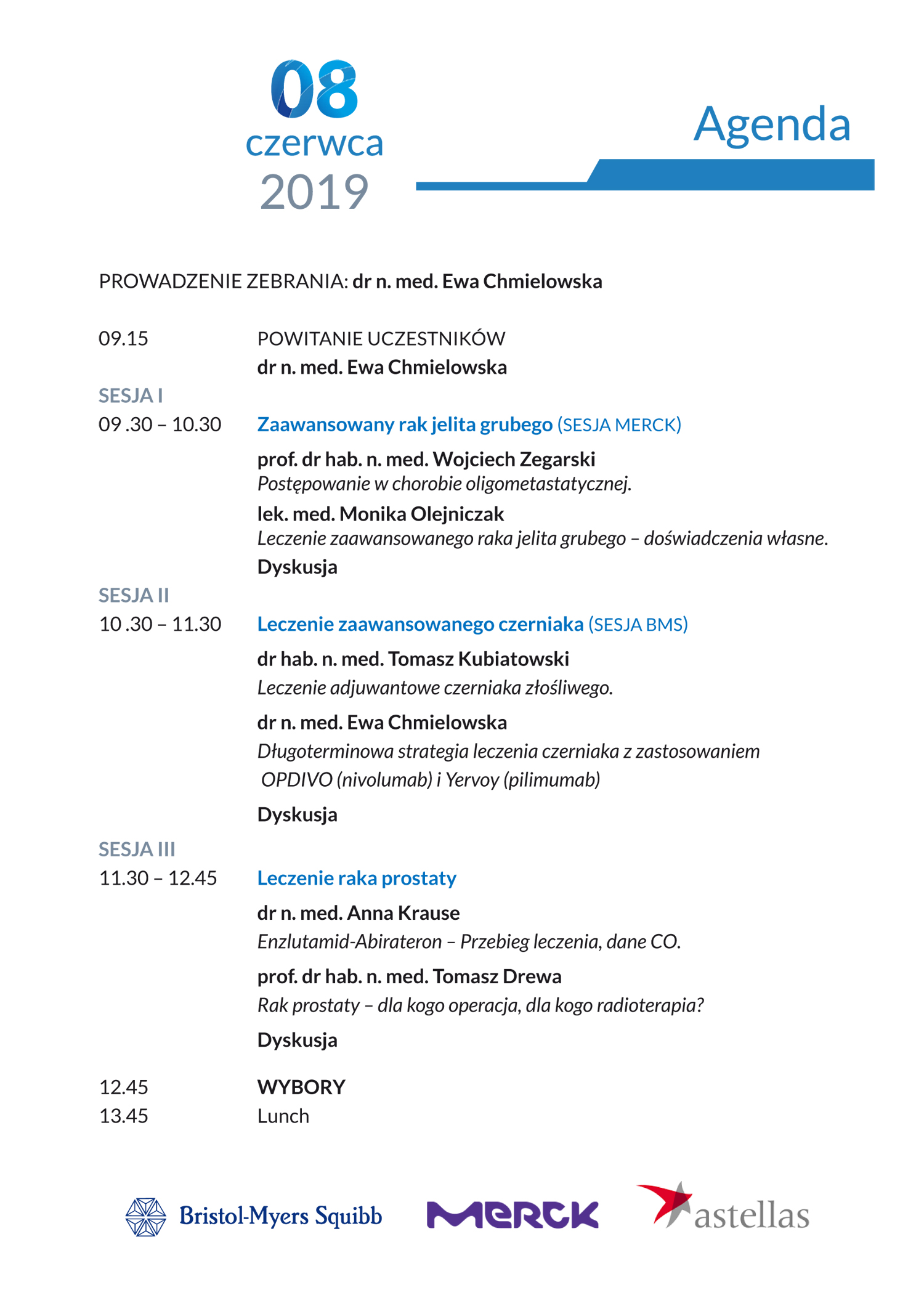 Sesja II 10.30 - 11.30 „Leczenie zaawansowanego czerniaka” (Sesja Sponsorowana BMS)
